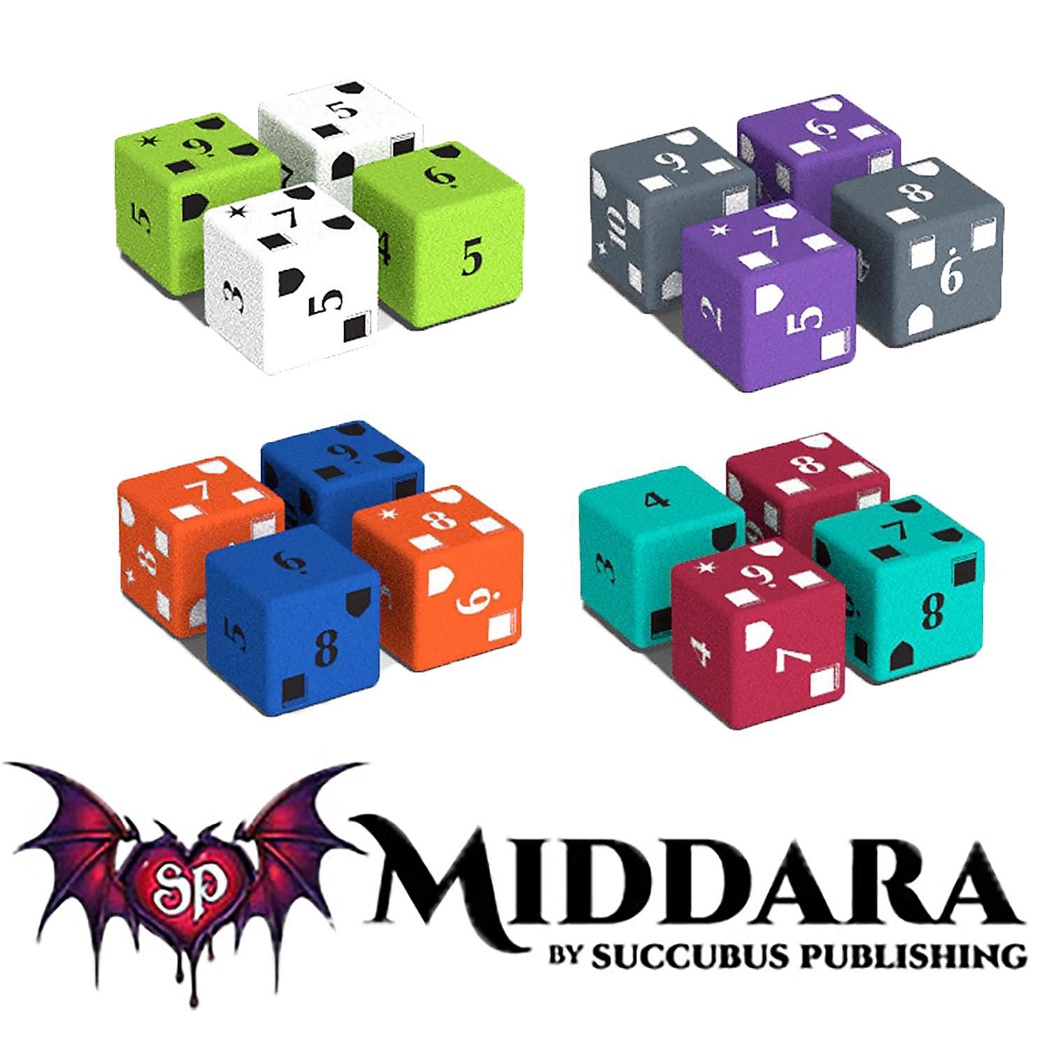 MIDDARA: ACT 1 - EXTRA DICE - 17 DICE PACK . An extra set of our custom Act 1 dice. Always Be Ready for Action! Keep the momentum flowing and never be caught without the right die with this extra set of 17 custom dice, identical to the ones used in Act 1 of the base game. Color-Coded for Clarity: These dice are carefully separated by color to easily distinguish which ones to use for Actions and Skill Checks. Custom Designed for Middara: Featuring unique designs and colors exclusive to the world of Middara, these visually striking dice come in 8 vibrant colors, each with corresponding numbers and symbols that enhance both gameplay and aesthetics. No Stickers, Just Precision: The designs are etched directly into the dice for lasting durability and easy identification, so you won't have to worry about wear or fading over time. Premium Quality: Crafted for durability and an exceptional gaming experience, these dice offer both beauty and functionality. Stay Organized: With this extra set, you'll keep the table tidy and never have to scramble for dice, ensuring your game flows smoothly without interrupting the action or tracking multiple rolls. EXPANSION / ADD ON SET: This is an expansion to Middara: Unintentional Malum - Act 1. An epic narrative driven board game that is heavily inspired by JRPG tactics games. Alongside your friends, players embody one of many characters who traverse the world, defeat monsters, get loot, and level up. Together, you will make hard choices that change the fate of the characters and the world around them.