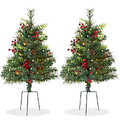Casafield 2 - 24.5in Outdoor Pathway Christmas Trees, Red Berries, Pine Cones, LED Lights