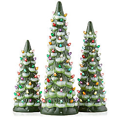 Casafield 3 PC. Set 8/10/12" Ceramic Christmas Trees, Green Snow with Multicolor Lights