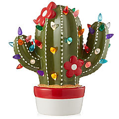 Casafield Pre-Lit Ceramic Christmas Cactus Hand-Painted Tabletop Décor with Lights