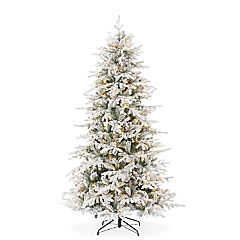 Casafield 6.5FT Snow Flocked Pre-Lit Slim Aspen Fir Realistic Artificial Christmas Tree