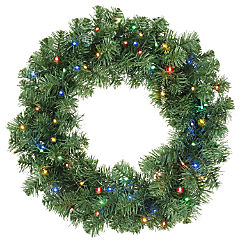 Casafield Pre-Lit Artificial Christmas Wreath, Green Fir with Multi-Color LED Lights - 24