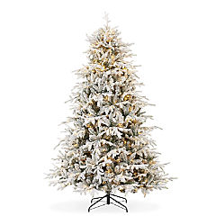 Casafield 7.5FT Pre-Lit Snow-Flocked Aspen Fir Realistic Artificial Christmas Tree w/Stand