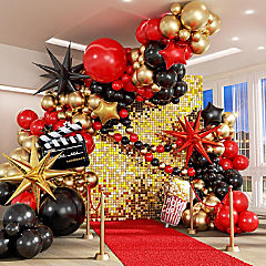 Movie Night Balloon Arch Garland Kit With Red Black And Gold Balloons Foil Balloons For Birthday Movies Night Theater Movie Theme Party Decorations