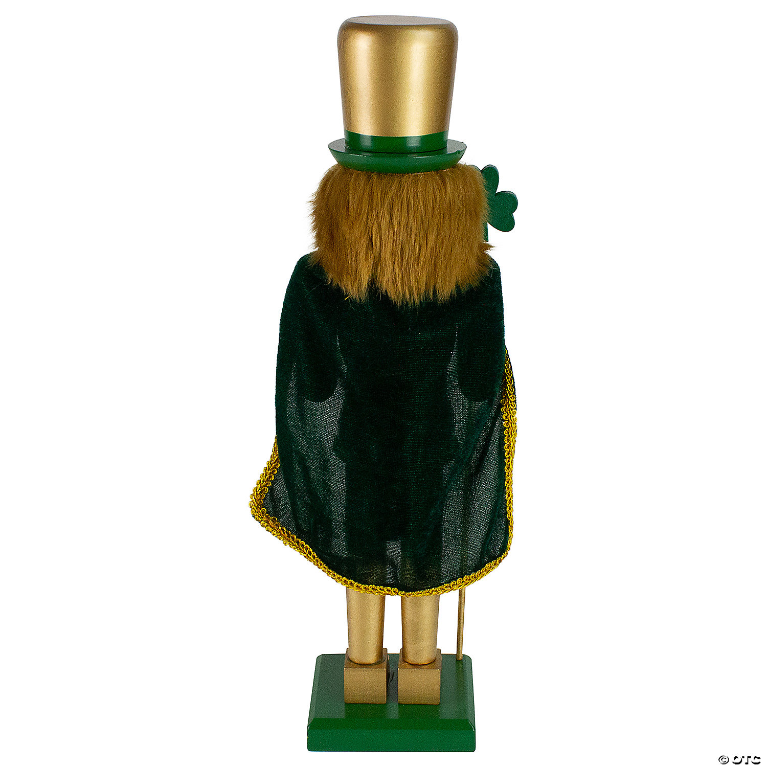 Add a new twist to your holiday decor with this Luck of the Irish Nutcracker. The perfect way to celebrate your Christmas and St. Patrick's Day holiday by displaying this Nutcracker on tabletops  mantles  and desks. Give as a gift to a loved one or as a gift for yourself.     Product Features:  Green and gold Luck of the Irish Nutcracker  Wearing an embellished green and gold cape  suit and matching top hat  Holds a green and white shamrock on a gold stick  Includes a gold drinking mug in his left hand  Stands on an attached and sturdy green base  Recommended for indoor decorative purposes only    Dimensions: 15"H x 4"W x 3.25"D  Material(s): wood/fabric/faux fur   Special Shipping Information:  This item ships separately from other items in your order.  This item cannot ship to a P.O. Box.  This item may be subject to additional processing days.   Item is not eligible for expedited shipping.     You may initiate a return for unused items within 30 days, if the items are in original packaging with all original materials included with the shipment.