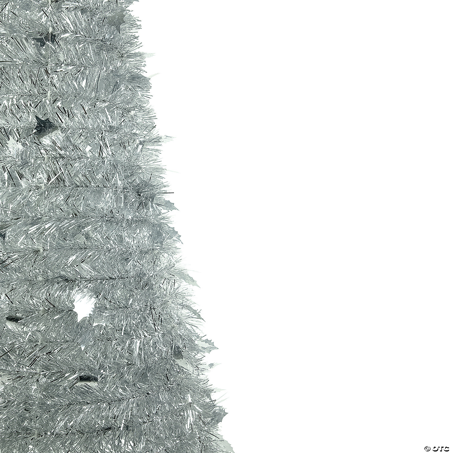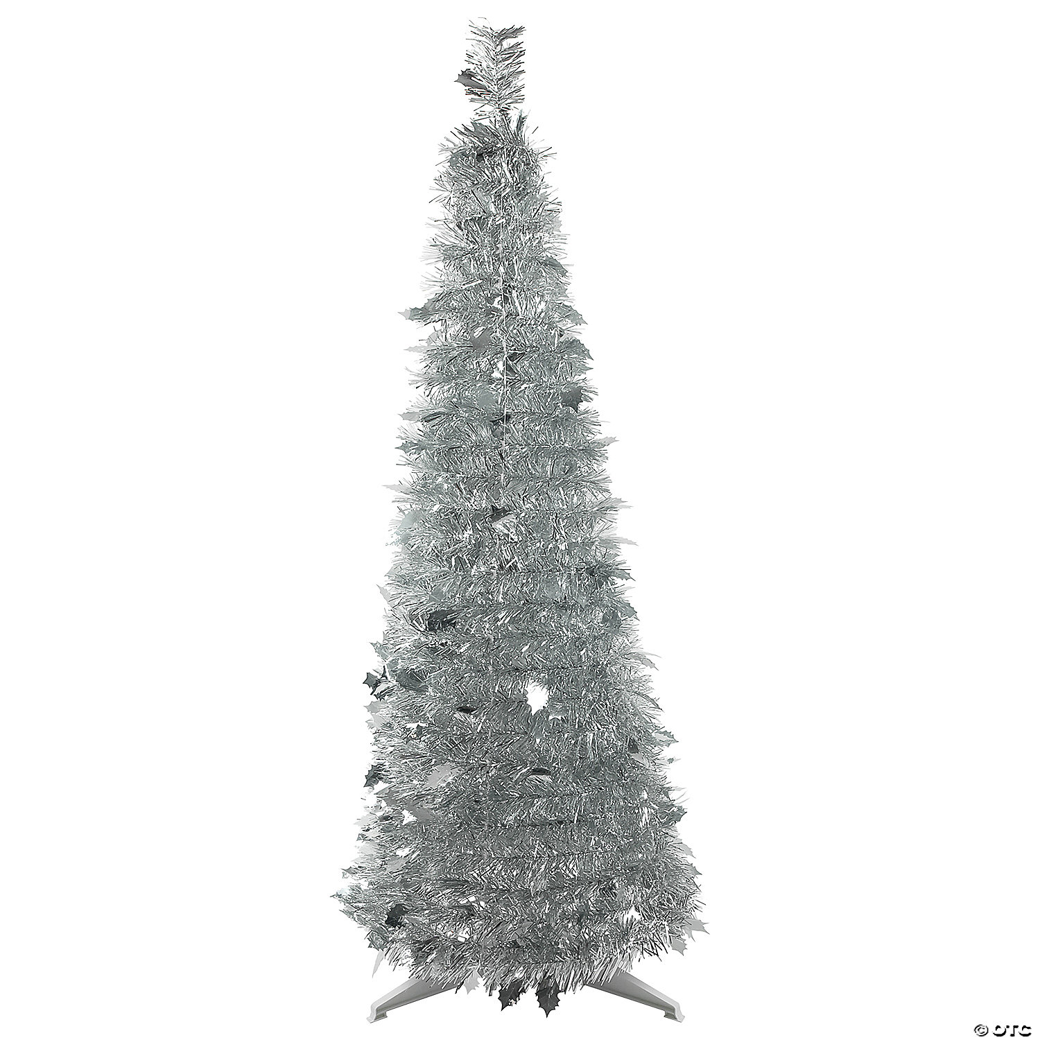 Are you sick of the long  drawn-out process of setting up your Christmas tree  piecing sections together  fluffing the branches  then having to tirelessly decorate it to your desire? If so  this is the perfect tree for you! This "pop-up" tree's collapsible design allows it to be set up in mere seconds and makes set up a breeze. It can be collapsed just as easily and stored away for next year when the season is over. Perfect for apartments  dorm rooms  or families who want to relax and enjoy the holiday without the hassle.    Product Features:  Silver tinsel pop-up artificial Christmas tree  White inner pole  Easy pop-up assembly  Comes with a plastic tree stand    Dimensions: 4' high (from the base of the stand to the top of the tree)  16" base diameter  Material(s): tinsel/metal/plastic   Special Shipping Information:  This item ships separately from other items in your order.  This item cannot ship to a P.O. Box.  This item may be subject to additional processing days.   Item is not eligible for expedited shipping.     You may initiate a return for unused items within 30 days, if the items are in original packaging with all original materials included with the shipment.