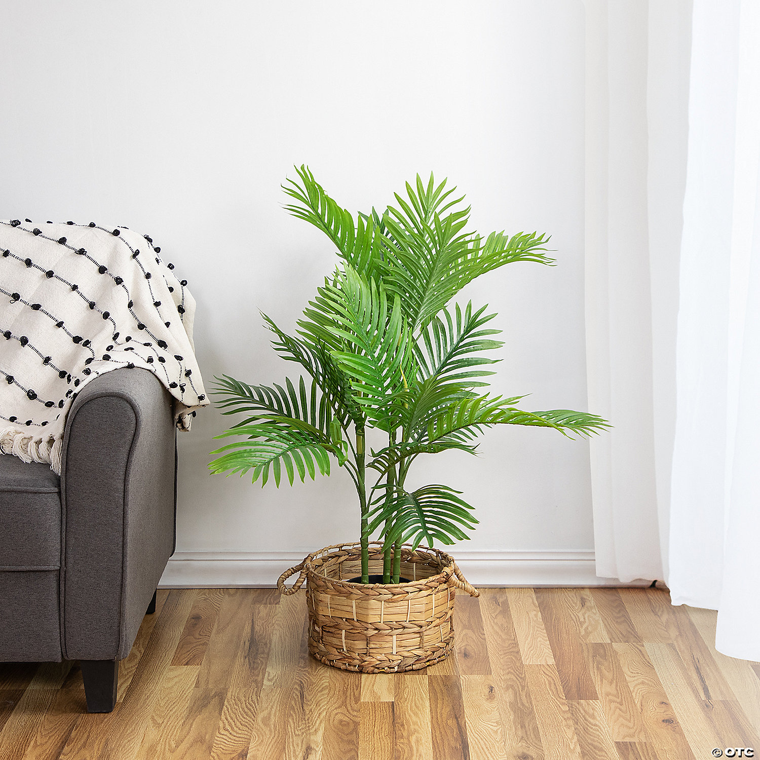 Welcome the tropics to your home with this artificial palm tree. This palm is the perfect solution for those who want some lush greenery in their home without the hassle of maintenance. This palm tree stands at the perfect height with a realistic trunk and a full canopy of green fronds. This tree is crafted from high-quality durable material giving you years of usage. With no need for water sunlight or pruning this potted palm tree will give you that on the beach feeling all year round. Product Features: Artificial mini palm tree. Realistic two-tone green palm leaves. Multiple leaves create a healthy plant with low maintenance. Nestled in a weighted black plastic pot. Plant in pot can be placed in larger decorative pots. No assembly required. Recommended for indoor or covered outdoor use Dimensions: 40" high x 22"diameter. Pot: 5" high x 6" diameter Material(s): plastic/moss. Note: Plant comes in black pot but can be placed in other larger pots as shown in styled photo Special Shipping Information: Item ships separately from other items in your order. Item cannot ship to a P.O. Box, APO, or PPO. Item may be subject to additional processing days. Item is not eligible for expedited or international shipping. You may initiate a return for unused items within 30 days, if the items are in original packaging with all original materials included with the shipment.
