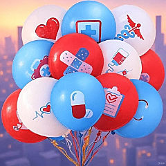 Healthcare Graduate Balloon Set, Crimson & Ivory Balloons 44 Piece for Graduation & Party Decor