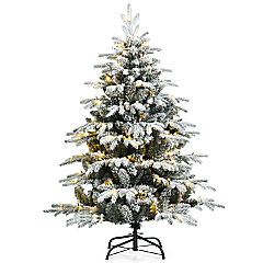 Costway 4.5 FT Pre-Lit Flocked Christmas Tree Hinged w/ 120 LED Lights & 757 Branch Tips