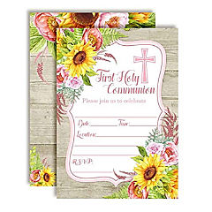 Sunflower & Peony First Holy Communion Invitations 40pc. by AmandaCreation