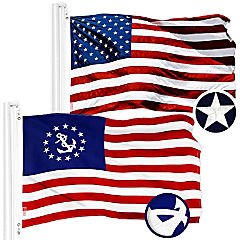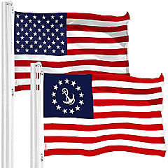 G128 Combo 6Ft White Flagpole & 3X5 Ft Usa Nautical Printed 150D Polyester Flag