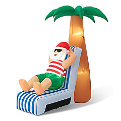 Glitzhome The set of 2 6FT Lighted Inflatable Santa under Coconut Tree Decor
