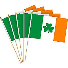 G128 12x18IN 24PK Ireland Shamrock Printed 150D Polyester Handheld Stick Flag