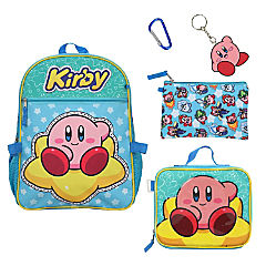 Kirby 5-Piece Set: 16 Backpack, Lunchbox, Utility Case, Rubber Keychain, and Carabiner