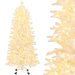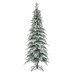 Glitzhome 7.5ft Pre-Lit Flocked Pencil Spruce Artificial Christmas Tree with 350 Warm White Lights, 3 function