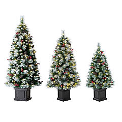 Glitzhome Set of 3 4ft/5ft/6ft Pre-Lit Pine Artificial Christmas Porch Tree with 150 Warm White Lights, Pinecones and Red Berries