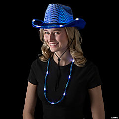 (17 items)Blue Light-Up Cowboy Hats & Beaded Necklaces Kit – 12 Pc.