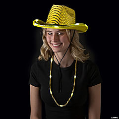 Yellow Light-Up Cowboy Hats & Beaded Necklaces Kit – 12 Pc.