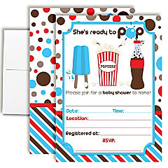 Ready To Pop Soda & Popcorn Baby Shower Invitations by AmandaCreation 40ct