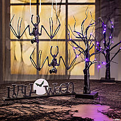 Light-Up Black Tree Halloween Tabletop Decoration with Bats