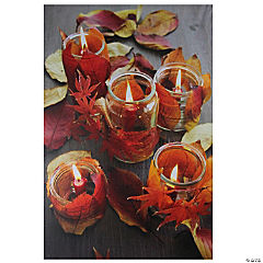 LED Lighted Autumn Leaves and Flickering Candles Canvas Wall Art 23.5" Proper 15.75