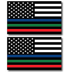 Magnet Me Up Thin Line Flag Magnet Decal, 3x5 Inches, 2 Pack, Heavy Duty Automotive Magnet for Car Truck SUV, in Support of Police, Fire, Military, Option B