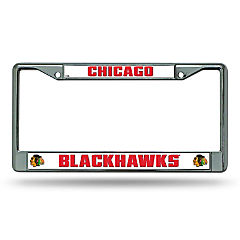 Rico Industries NHL Hockey Chicago Blackhawks Premium 12" x 6" Chrome Frame With Plastic Inserts - Car/Truck/SUV Automobile Accessory