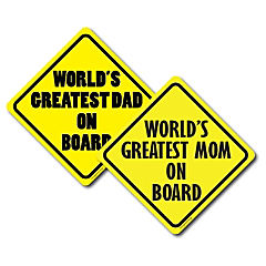 Magnet Me Up World's Greatest Mom and World's Greatest Dad on Board, Combo 2 Pack Magnet Decal, 5x5 Inches, Heavy Duty Automotive Magnet for Car Truck SUV