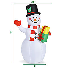 5 FT Tall Snowman Inflatable Blow up Inflatable w/Built-in Colorful LED Lights
