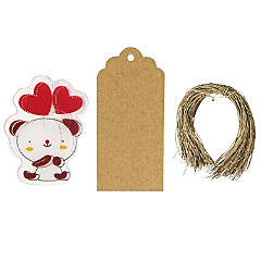 Wrapables Set Of 50 Teddy Bear Twist Ties With 20 Scalloped Gift Tags/Kraft Hang Tags And Free Cut Strings