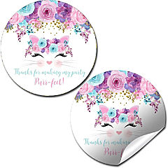 AmandaCreation Floral Kitty Face Thank You Envelope Seal 40pcs.