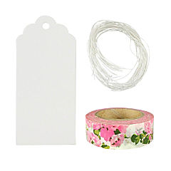 Wrapables 50 White Scallop Gift Tags/Kraft Hang Tags With Free Cut String & 1 Pink Flower Garden Washi Roll