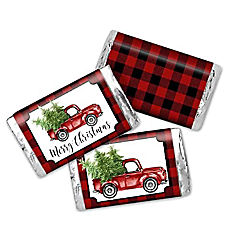 AmandaCreation Buffalo Plaid Holidays Truck Mini Candybar Wrappers 45pcs.