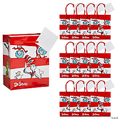 4 1/4" x 5 1/2" Small Red & White Striped Dr. Seuss™ Paper Gift Bags with Tags – 12 Pc.