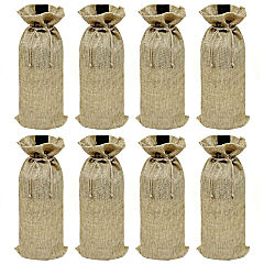 Wrapables Reusable Burlap Wine Bags, Rustic Gift Bags with Drawstring (Set of 8), Natural
