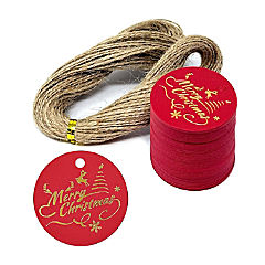 Wrapables 1.75 Inch Round Circle Gold Foil Christmas Holiday Gift Tags with Jute String (100pcs), Red