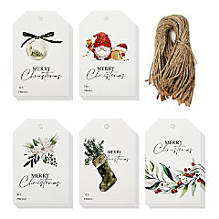 Wrapables 100pcs Decorative Santa Claus Tag Labels with Bakers Twine