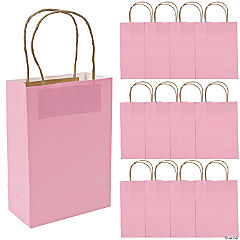 6 1/2" x 9" Medium Pink Kraft Paper Gift Bags - 12 Pc.