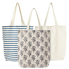 Set of 3 Small Reusable Canvas Tote Bags - Cute Cloth Bags for Grocery Shopping, Farmers Market (3 Designs, 15x16.5 in)