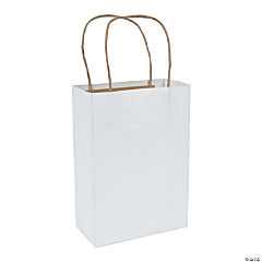 7" x 13" Medium White Kraft Paper Gift Bags - 12 Pc.