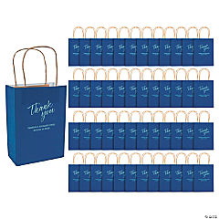6 1/2" x 9" Bulk 72 Pc. Personalized Medium Navy Blue Thank You Kraft Paper Gift Bags