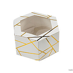 White with Gold Foil Hexagon Favor Boxes with Window - 12 Pc.