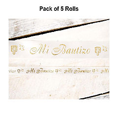 7/8" x 25 Yards Gold "Mi Bautizo" Printed Satin Ribbon for Baptism Favors