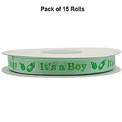 3/8" x 25 Yards Mint It's a Boy Grosgrain Ribbon 15 Rolls Pack
