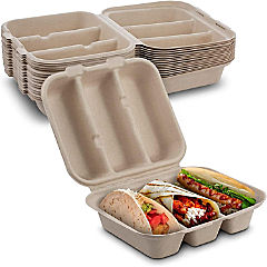 MT Products 3 Compartment Pulp Fiber Taco Holders 8" x 7" x 3" - Pack of 15
