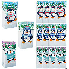 10" Winter Fun Penguin Paper Treat Bags Assortment - 12 Pc.