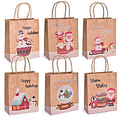 8 1/2" - 11" 1/2" Medium & Large Christmas Scene Kraft Paper Gift Bag Assortment - 12 Pc.