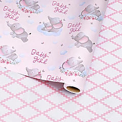 LaRibbons 17" X 33' Reversible Wrapping Paper - Pink Elephant w/ Pink Quilted
