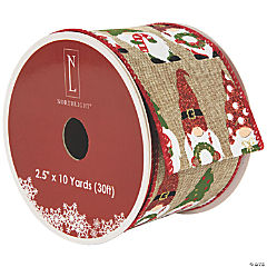 Gnome Burlap Style Wired Craft Christmas Ribbon 2.5" x 10 Yards