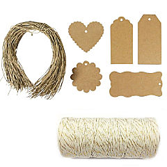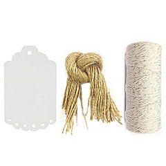 Wrapables 100 Brown Gift Tags/Kraft Hang Tags With Free Cut String + Cotton Baker'S Twine 12Ply 110 Yard, White/Gold Metallic